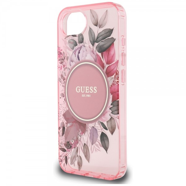 Guess iPhone 16e Flowers MagSafe Hülle Case Rosa