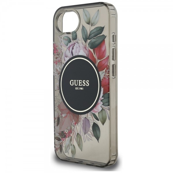 Guess iPhone 16e Flowers MagSafe Hülle Case Schwarz