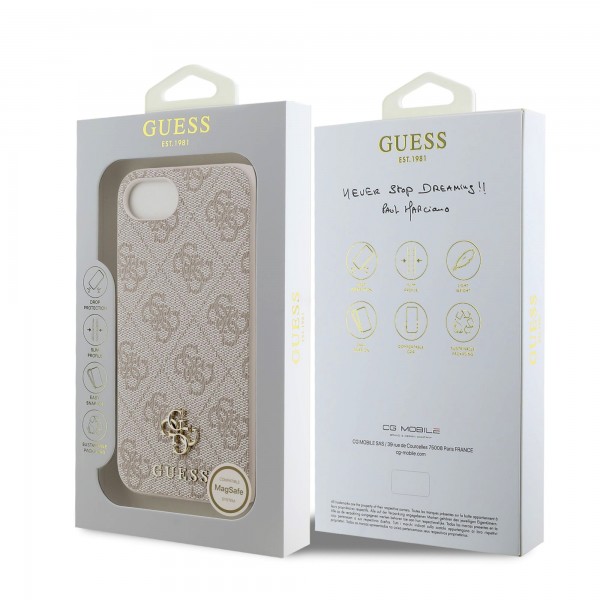 Guess iPhone 16e Hülle Case 4G Small Metal Logo MagSafe Rosa