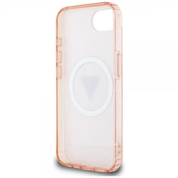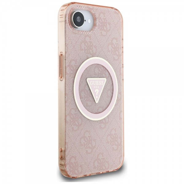 Guess iPhone 16e Metal Glitter 4G CircleTriangle MagSafe Hülle Case Rosa