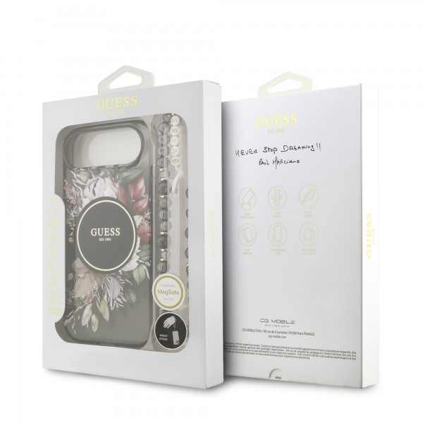 Guess iPhone 17 Air Hülle Case MagSafe Flowers Strap Schwarz