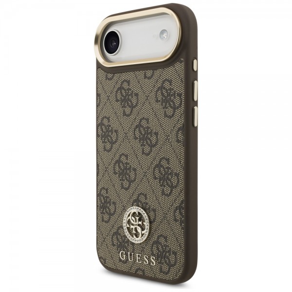 Guess iPhone 17 Air Hülle Crossbody MagSafe 4G Strass Metal Buttons Braun. Einzigartige Optik und außergewöhnliche Qualität. Die exklusive Schutzhülle der renommierten Marke Guess vereint Eleganz und erstklassigen Stil. Die Hülle ist mit hochwertigem Öko-Leder mit aufgedrucktem, legendärem 4G-Muster bezogen. An der Unterseite befinden sich ein 4G-Emblem und das Guess-Logo, die das Prestige dieser Hülle dezent unterstreichen.