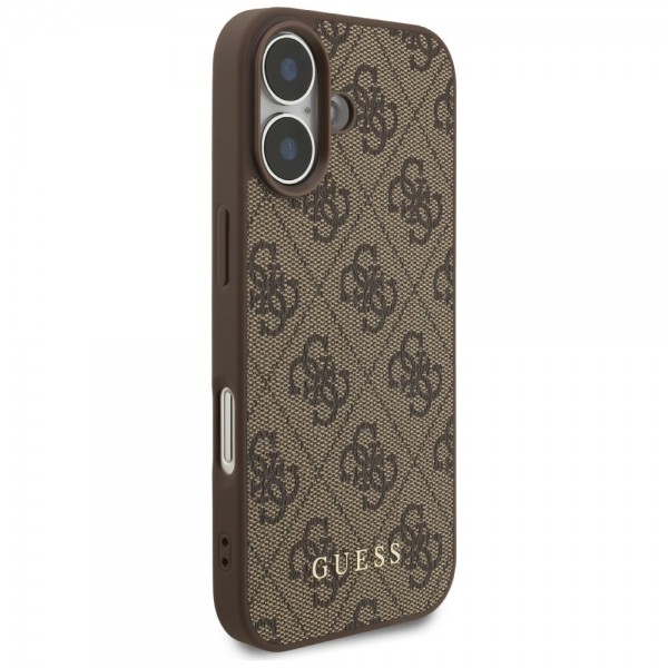Guess iPhone 17 Hülle 4G Classic Case Braun. Stil und Eleganz! Diese elegante Kollektion wird selbst die anspruchsvollsten und anspruchsvollsten Ansprüche begeistern. Die Außenseite der Hüllen ist mit zartem Öko-Leder überzogen und zusätzlich mit einem hochwertigen 4G-Print verziert – für edlen Charakter und Eleganz. Ein wunderschöner goldener Patch mit dem Guess-Logo rundet diese einzigartige Kollektion ab und unterstreicht die hervorragende Qualität und Authentizität der Produkte dieser renommierten Marke.