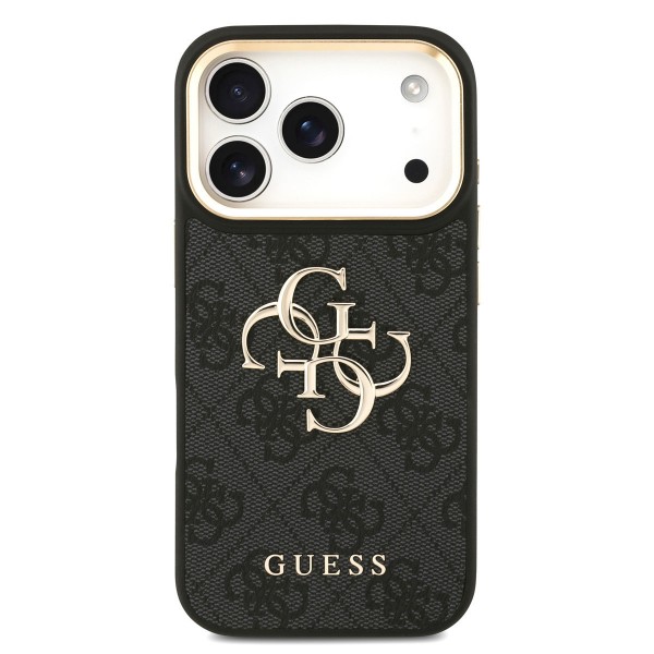 Schnellsuche Guess iPhone 17 Pro Hülle Case 4G Metal Logo Edge Frame Schwarz