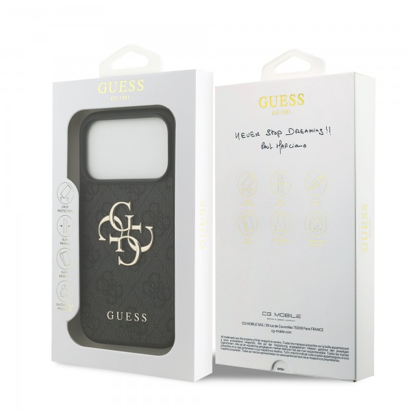 Schnellsuche Guess iPhone 17 Pro Hülle Case 4G Muster Metal Logo Grau
