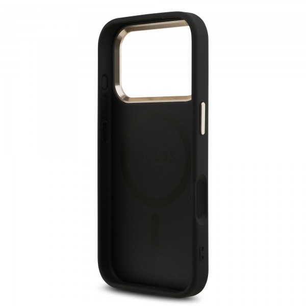 Guess iPhone 17 Pro Hülle Case 4G Strass Gold Frame MagSafe Schwarz