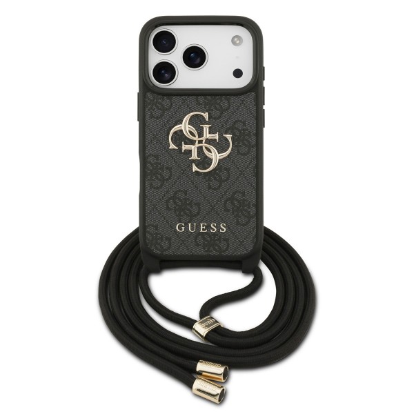 Guess iPhone 17 Pro Hülle Case Cord Stap Crossbody 4G Big Logo Schwarz