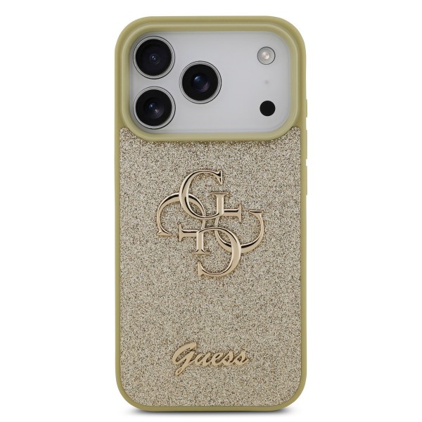 Schnellsuche Guess iPhone 17 Pro Hülle Case Fixed Glitter Big 4G Logo Gold