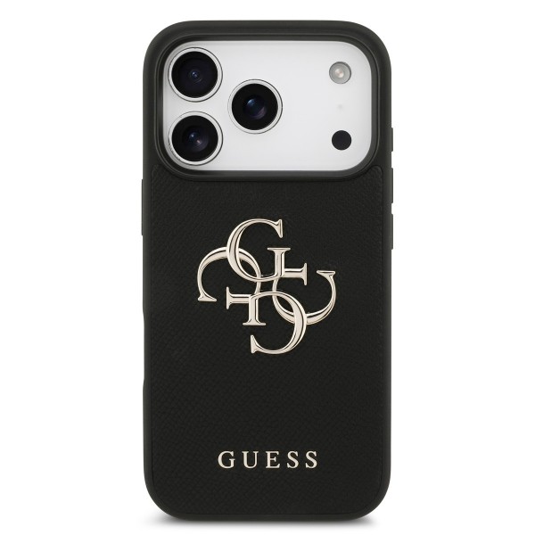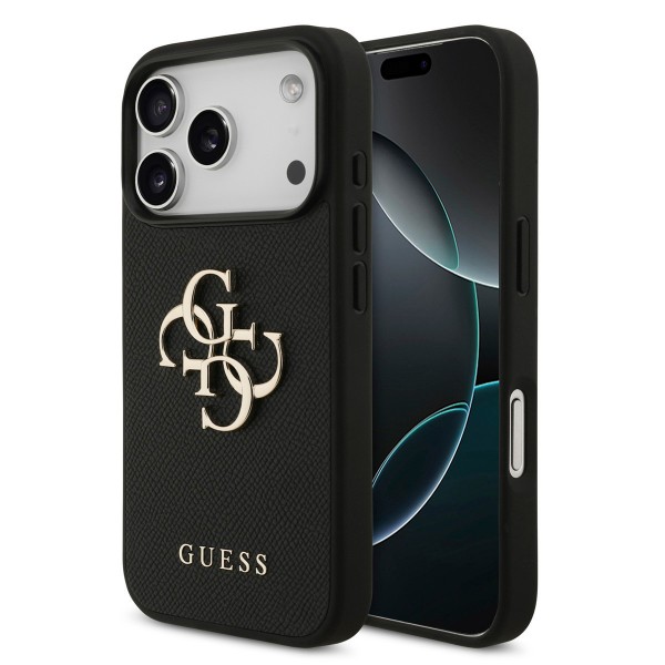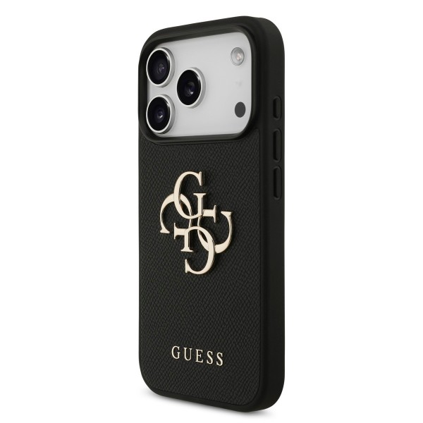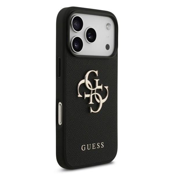 Guess iPhone 17 Pro Hülle Case Grained Big 4G Logo Schwarz