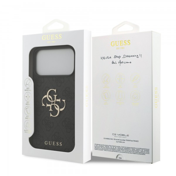 Schnellsuche Guess iPhone 17 Pro Max Hülle Case 4G Muster Metal Logo Grau