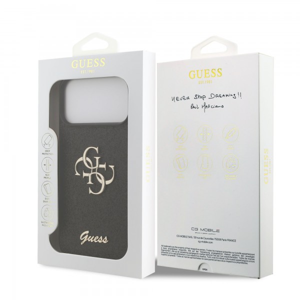 Schnellsuche Guess iPhone 17 Pro Max Hülle Case Fixed Glitter 4G Metal Logo Schwarz