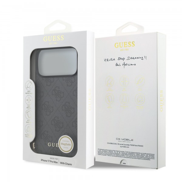 Guess iPhone 17 Pro Max Hülle Case MagSafe 4G Charm Grau