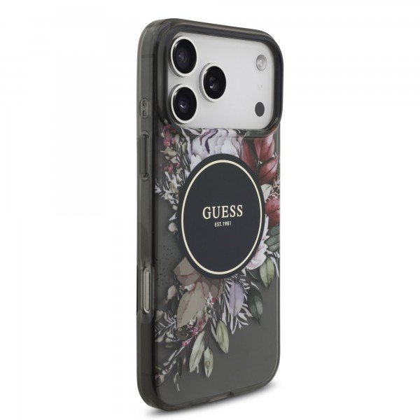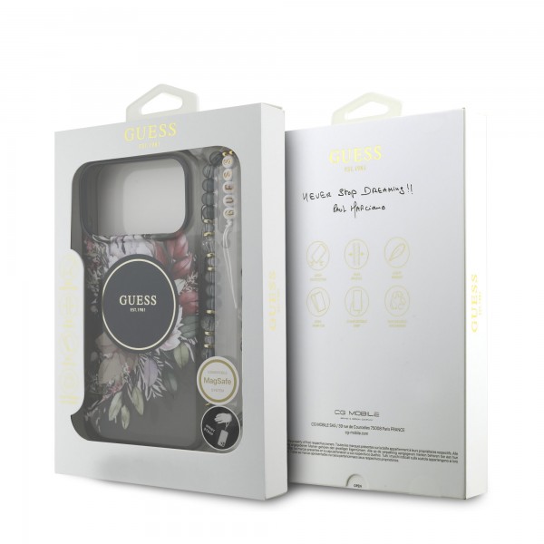 Schnellsuche Guess iPhone 17 Pro Max Hülle Case MagSafe Flowers Strap Schwarz