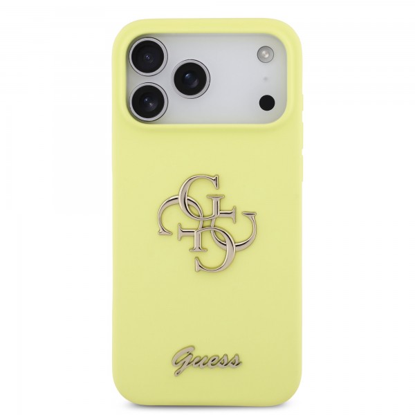 Guess iPhone 17 Pro Max Hülle Case Silikon 4G Metal Logo Gelb