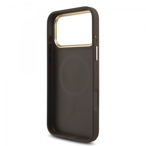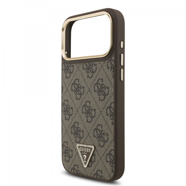 Guess iPhone 17 Pro Max Hülle Case Strass 4G Gold Frame MagSafe Braun