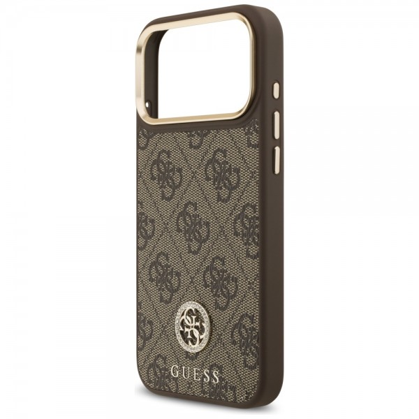 Guess iPhone 17 Pro Max Hülle Crossbody MagSafe 4G Strass Metal Buttons Braun. Einzigartige Optik und außergewöhnliche Qualität. Die exklusive Schutzhülle der renommierten Marke Guess vereint Eleganz und erstklassigen Stil. Die Hülle ist mit hochwertigem Öko-Leder mit aufgedrucktem, legendärem 4G-Muster bezogen. An der Unterseite befinden sich ein 4G-Emblem und das Guess-Logo, die das Prestige dieser Hülle dezent unterstreichen.