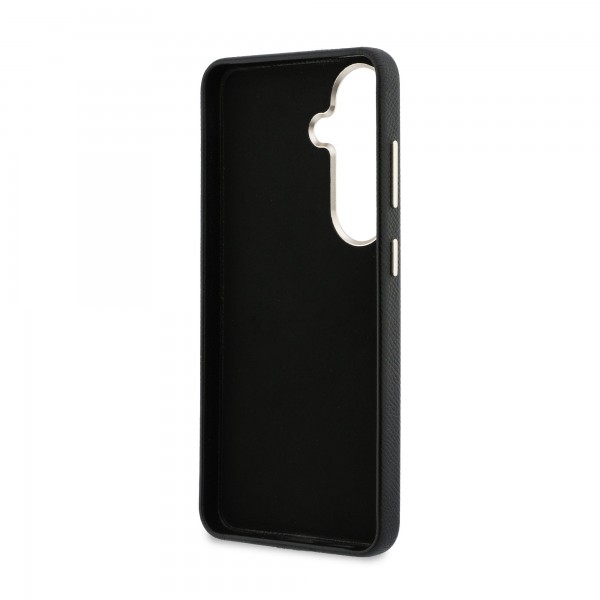 Guess Samsung S26 Hülle Case 4G Resin Logo Schwarz. Zusätzliche Akzente wie Metalleinsätze an den Seitentasten und um das Kameraobjektiv herum verleihen der Hülle einen einzigartigen Stil. Abgesehen von ihren ästhetischen Qualitäten bietet die Hülle soliden Schutz für das Telefon, schützt es vor Kratzern und versehentlichen Beschädigungen und sorgt sowohl für ein hervorragendes Aussehen als auch für Funktionalität. Weitere dekorative Elemente dieser Hülle sind integrierte Tastenabdeckungen und ein Rahmen um die Kameralinse in der gleichen golden Farbe – diese einzigartige Kombination macht die Hülle nicht nur sehr elegant, sondern auch äußerst modisch. Die Hülle mit Aluminiumrahmen um die Kamera und Metallknöpfen verbindet modernen Stil mit anspruchsvollem Schutz.