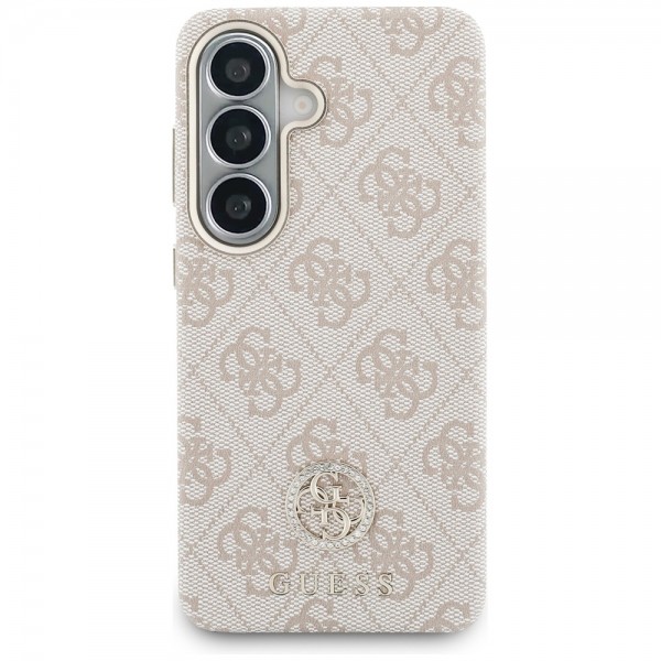 Guess Samsung S26 Hülle Case 4G Round Strass Logo MagSafe Rosa. Eine exklusive Kollektion von Schutzhüllen, signiert vom bekannten Modehaus Guess. Die 4G Round Logo Strass Rhinestone Kollektion setzt neue Maßstäbe für einzigartigen Stil und bietet ein spektakuläres Design, beeindruckt durch Ästhetik und modisches Aussehen.