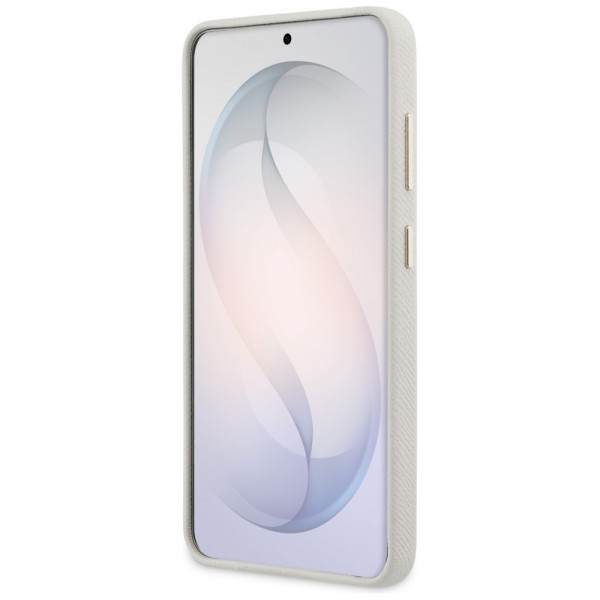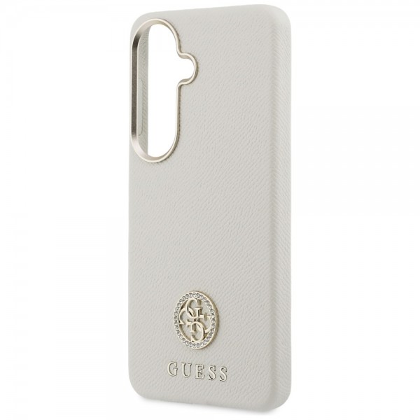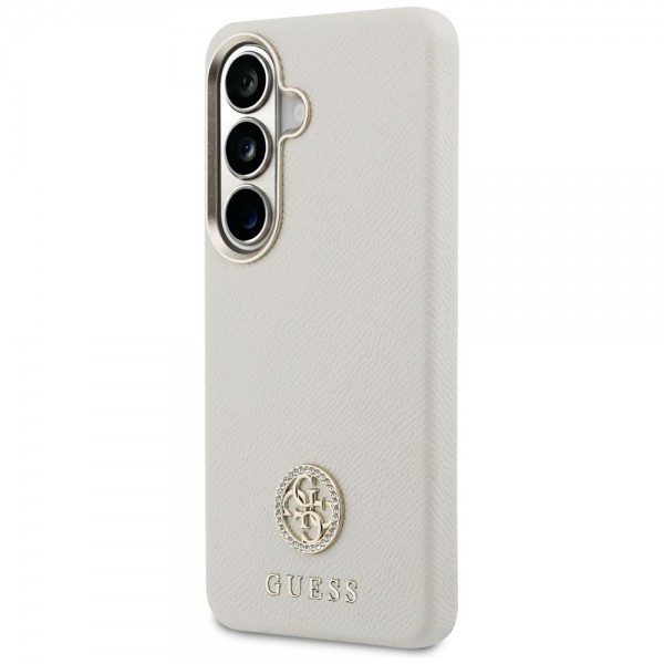Guess Samsung S26 Hülle Case Round Strass Logo MagSafe Beige. Eine exklusive Kollektion von Schutzhüllen, signiert vom bekannten Modehaus Guess. Die 4G Round Logo Strass Rhinestone Kollektion setzt neue Maßstäbe für einzigartigen Stil und bietet ein spektakuläres Design, beeindruckt durch Ästhetik und modisches Aussehen.