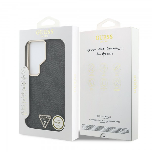 Guess Samsung S26 Ultra Hülle Case 4G Strass Triangle Magnetic Frame Schwarz