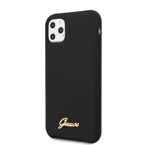 Guess Silikon Vintage Logo Gold Hülle Schwarz iPhone 11 Pro Max GUHCN65LSLMGBK