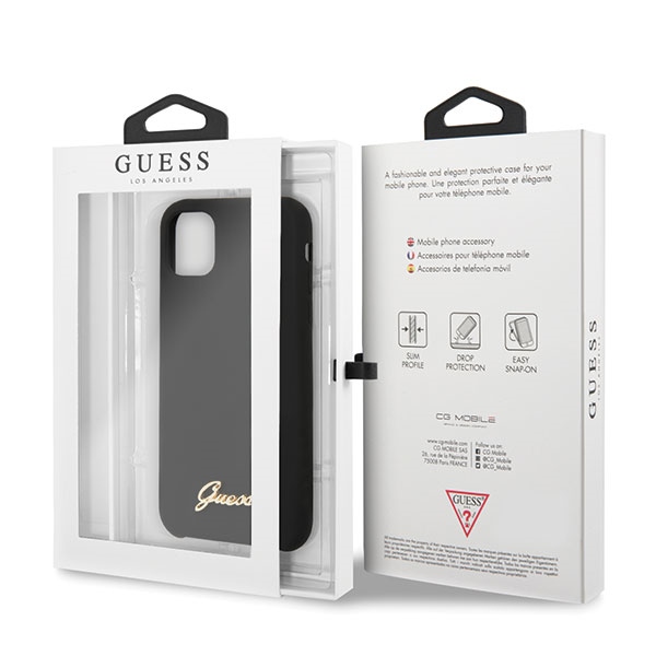 Guess Silikon Vintage Logo Gold Hülle Schwarz iPhone 11 Pro Max GUHCN65LSLMGBK. Diese flexible Silikon-Handyhülle wurde entwickelt, um Ihr iPhone luxuriös zu schützen. Entwickelt für einfache Bedienung und Schutz Ihrer Investition. Diese schlanke und sexy Handyhülle hat beides.