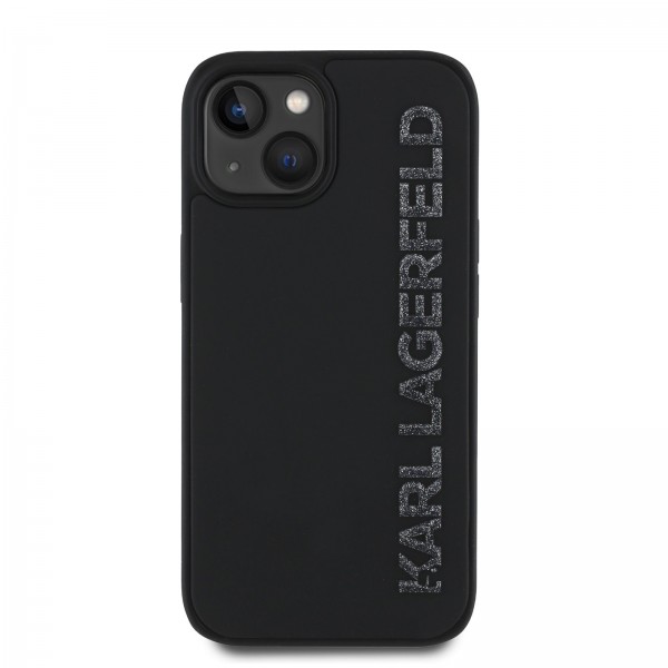 Karl Lagerfeld iPhone 14 Hülle Case 3D Rubber Glitter Logo Schwarz