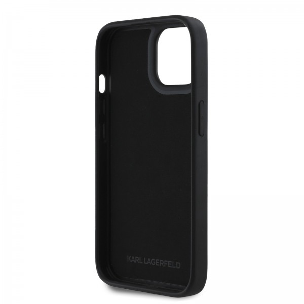 Schnellsuche Karl Lagerfeld iPhone 14 Hülle Case 3D Rubber Glitter Logo Schwarz