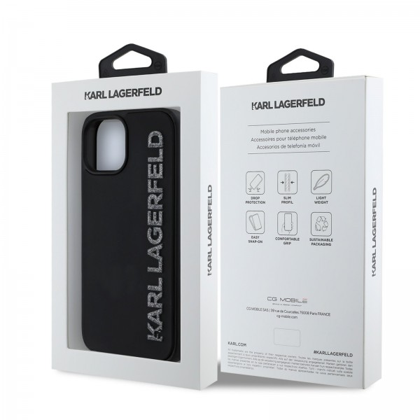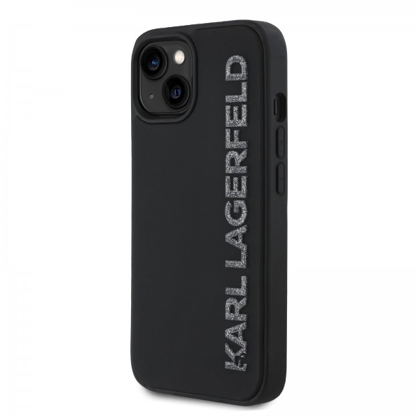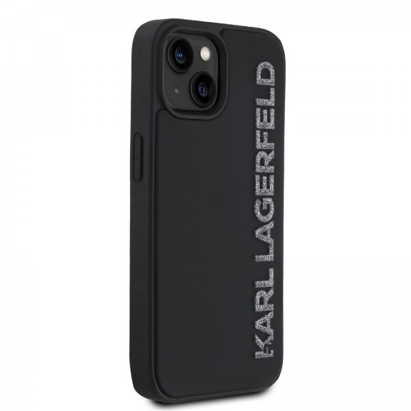 Karl Lagerfeld iPhone 15 Hülle Case 3D Rubber Glitter Logo Schwarz