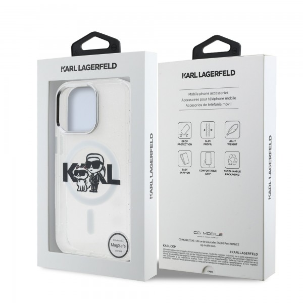 Karl Lagerfeld iPhone 15 Pro Hülle Case Glitter Sketch MagSafe Clear