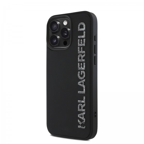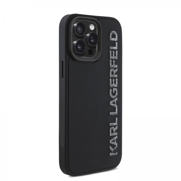 Karl Lagerfeld iPhone 15 Pro Max Hülle Case 3D Rubber Glitter Logo Schwarz