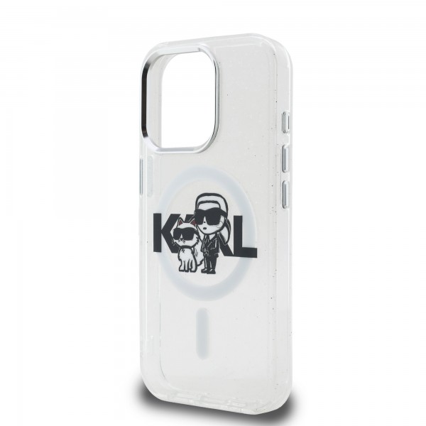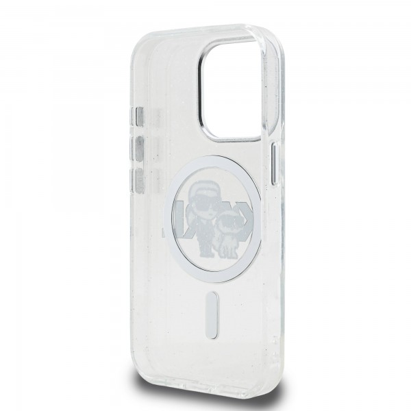 Karl Lagerfeld iPhone 15 Pro Max Hülle Case Glitter Sketch MagSafe Clear