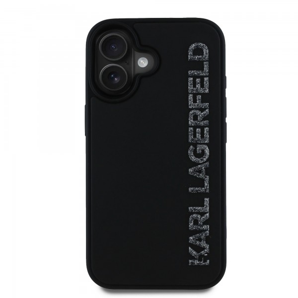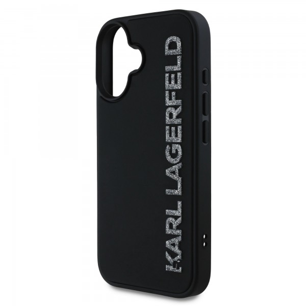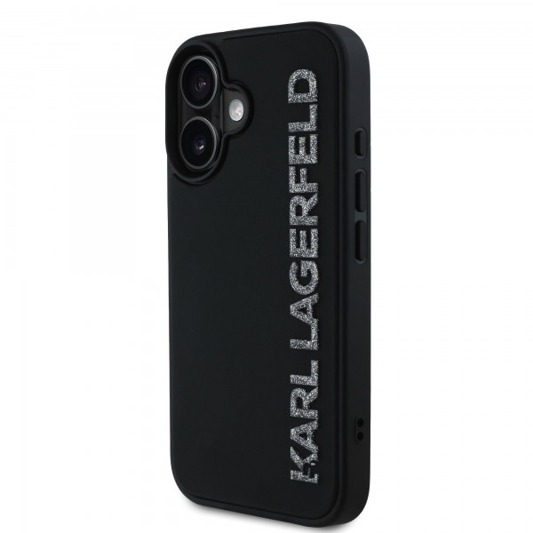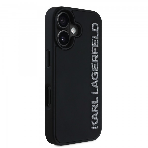 Karl Lagerfeld iPhone 16 Hülle Case 3D Rubber Glitter Logo Schwarz
