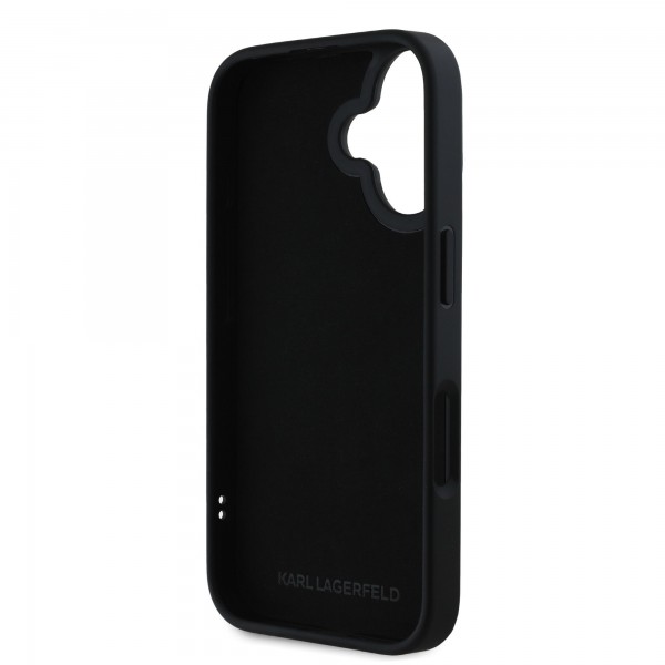 Schnellsuche Karl Lagerfeld iPhone 16 Hülle Case 3D Rubber Glitter Logo Schwarz