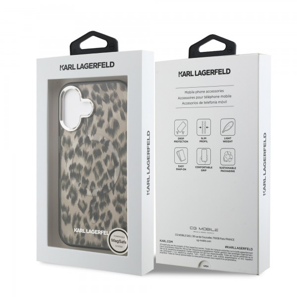 Karl Lagerfeld iPhone 16 Hülle Case Leopard MagSafe Braun