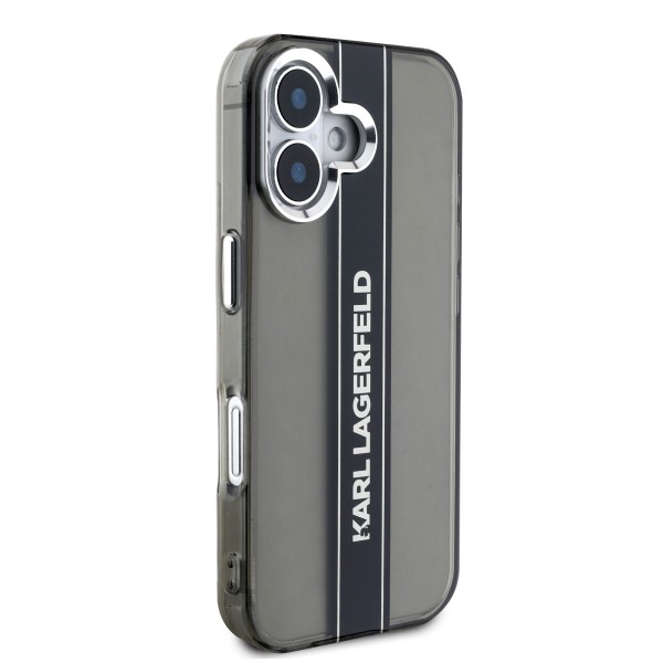 Karl Lagerfeld iPhone 16 Hülle Case Stripe Logo Schwarz