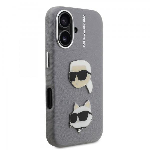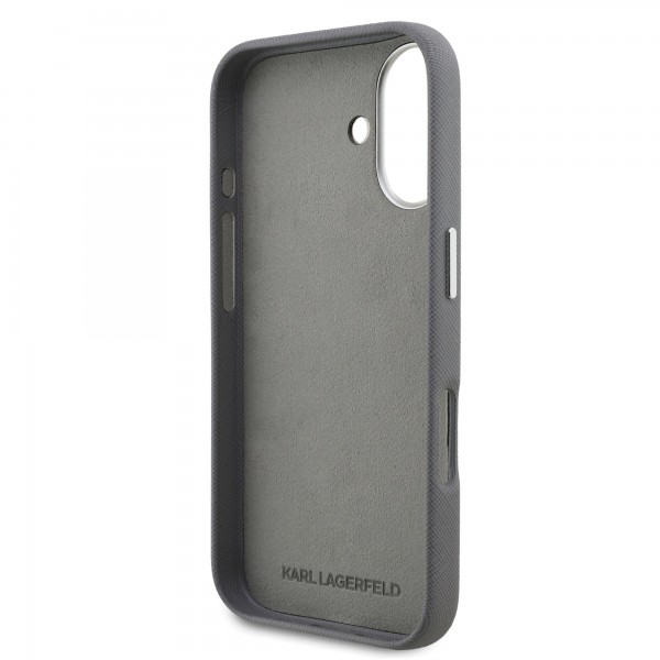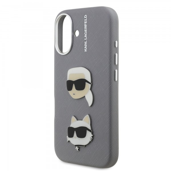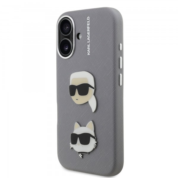Karl Lagerfeld iPhone 16 Hülle Grained K & CH Heads Grau