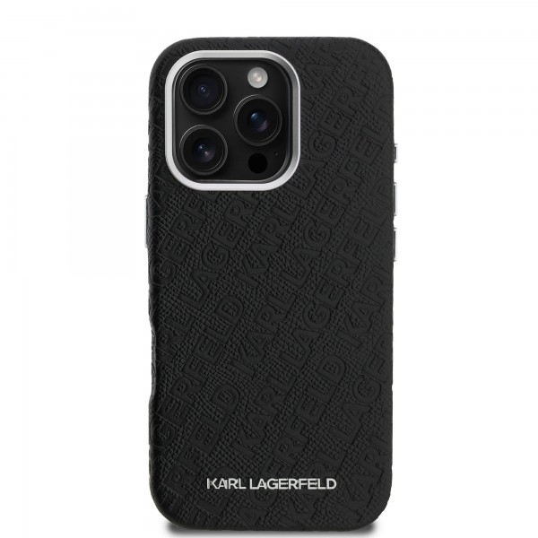 Karl Lagerfeld iPhone 16 Pro Hülle Case MagSafe Repeated Logo Schwarz