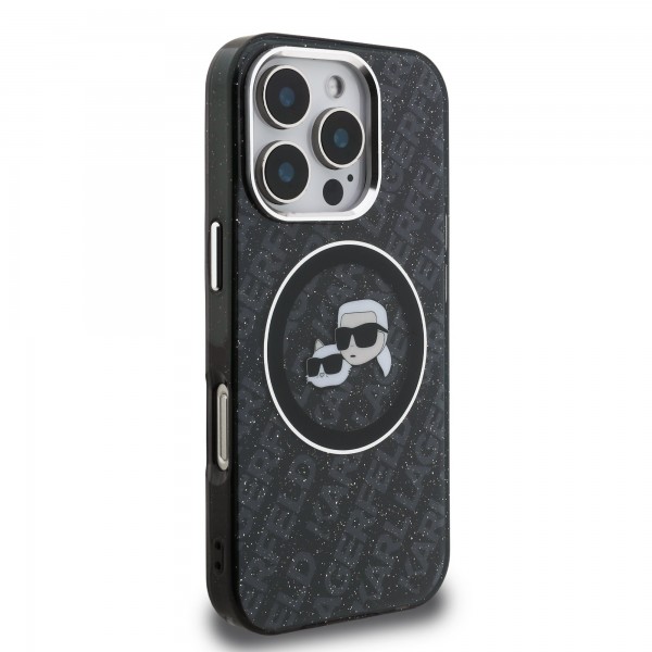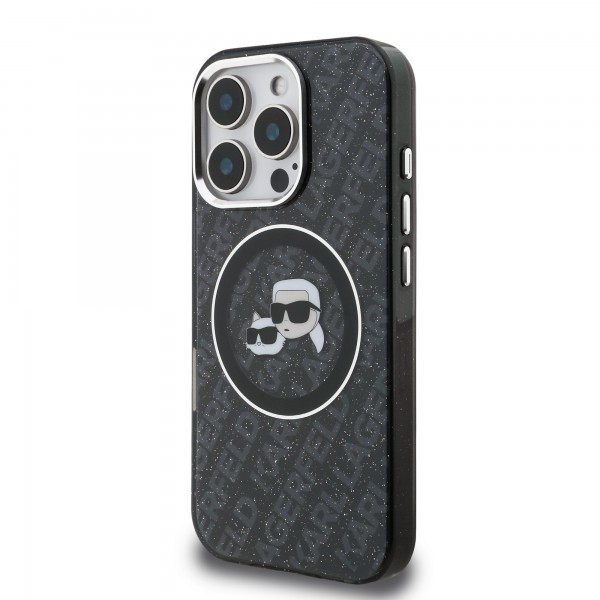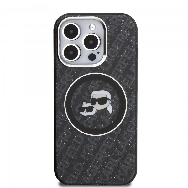 Schnellsuche Karl Lagerfeld iPhone 16 Pro Hülle Case Repeated Logo MagSafe Schwarz
