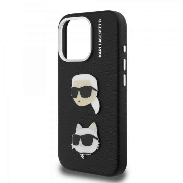 Karl Lagerfeld iPhone 16 Pro Hülle Grained K & CH Heads Schwarz