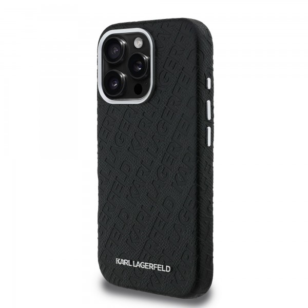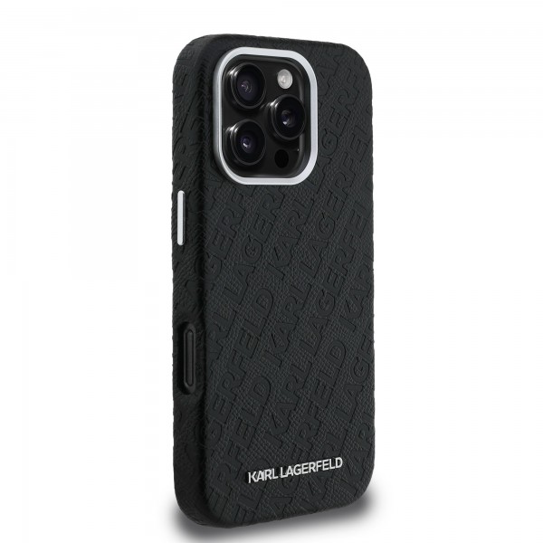 Karl Lagerfeld iPhone 16 Pro Max Hülle Case MagSafe Repeated Logo Schwarz