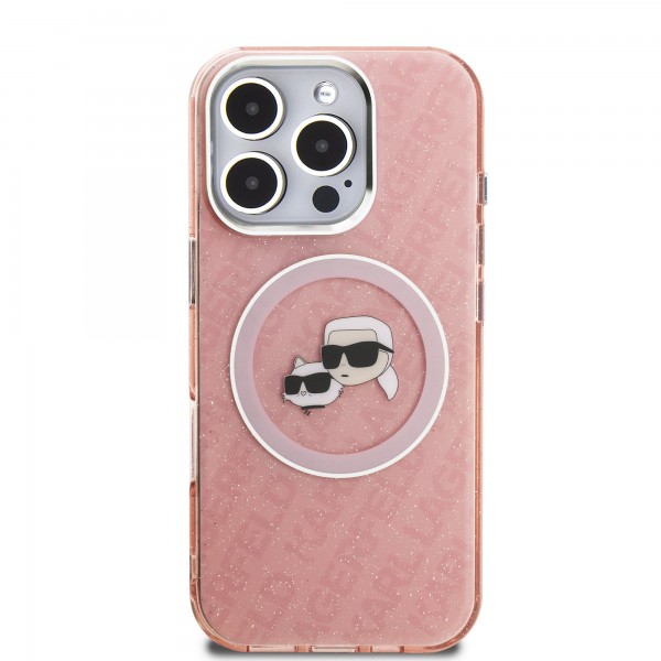 Schnellsuche Karl Lagerfeld iPhone 16 Pro Max Hülle Case Repeated Logo MagSafe Rosa