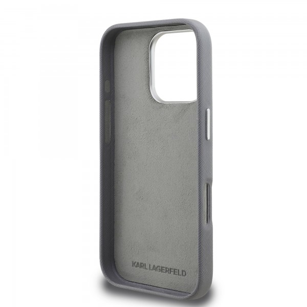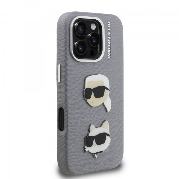 Karl Lagerfeld iPhone 16 Pro Max Hülle Grained K & CH Heads Grau