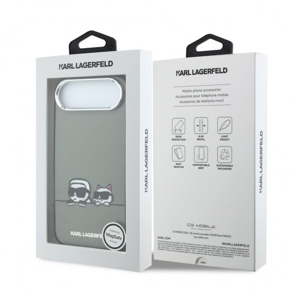 Karl Lagerfeld iPhone 17 Air Hülle Case Karl Choupette Heads MagSafe Grau