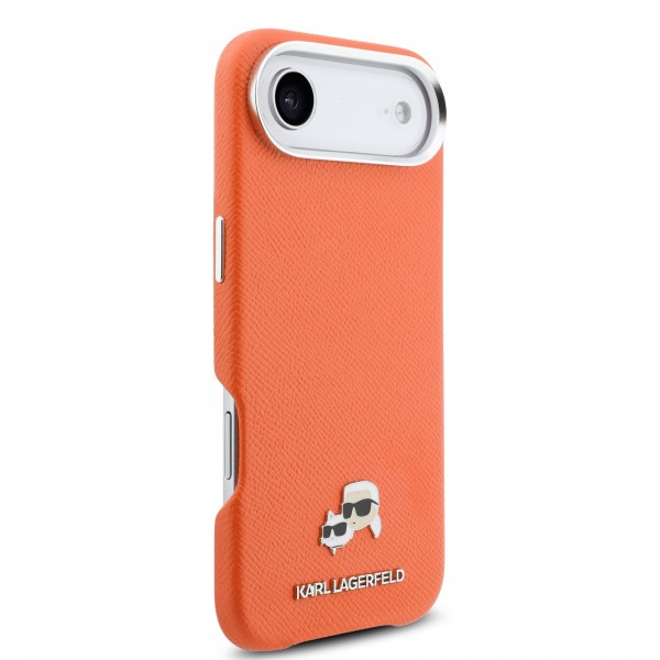Schnellsuche Karl Lagerfeld iPhone 17 Air Hülle Case Karl Choupette Metal Pins MagSafe Orange