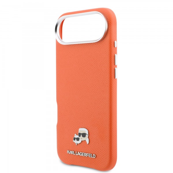 Karl Lagerfeld iPhone 17 Air Hülle Case Karl Choupette Metal Pins MagSafe Orange