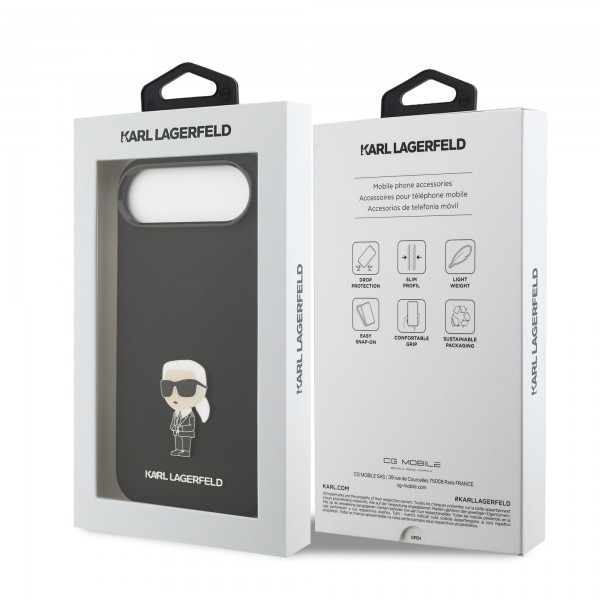 Karl Lagerfeld iPhone 17 Air Hülle Case Silikon Metal Ikonik Schwarz
