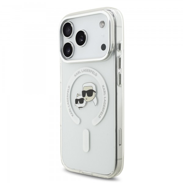 Karl Lagerfeld iPhone 17 Pro Hülle Case K&CH Heads Metal Frame MagSafe Transparent