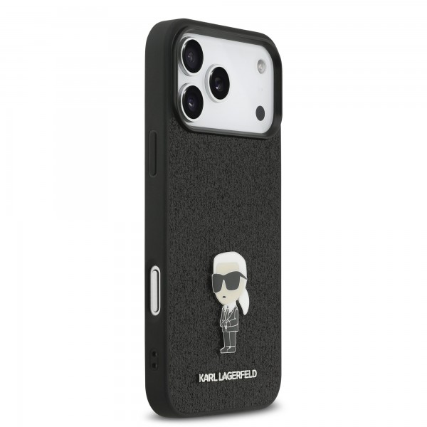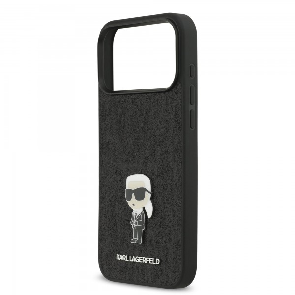 Karl Lagerfeld iPhone 17 Pro Max Hülle Case Fixed Glitter Metal Ikonik Schwarz