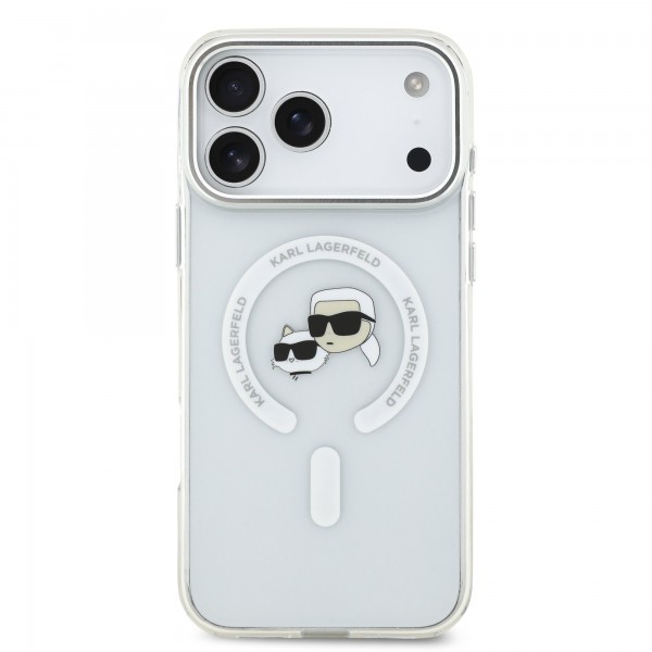 Karl Lagerfeld iPhone 17 Pro Max Hülle Case K&CH Heads Metal Frame MagSafe Transparent